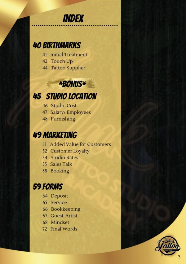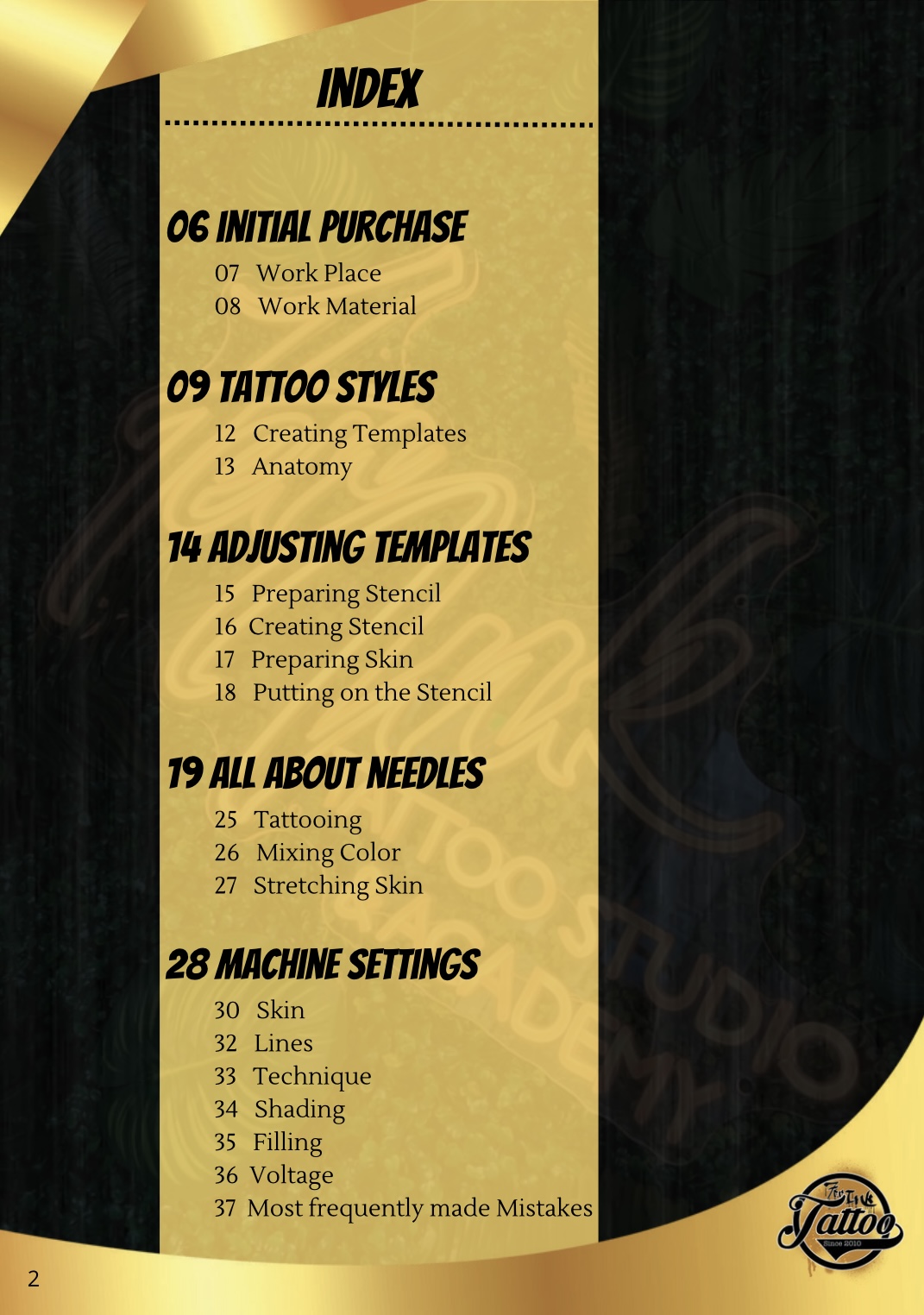 You want to become a tattoo artist, but don’t know how to start? What needles to use, what the right stitch depth is, how to mix colors or what colors to even use? What voltage do I have to set my machine to? This and much more is explained in our manual on over 70 pages. Get started now and be well informed from the start. All secrets of the industry have been brought together and recorded here in months of work. The manual was written by Tom Irschina, who -with over 14 years of tattoo experience- is now finally passing on his knowledge. The content includes:
